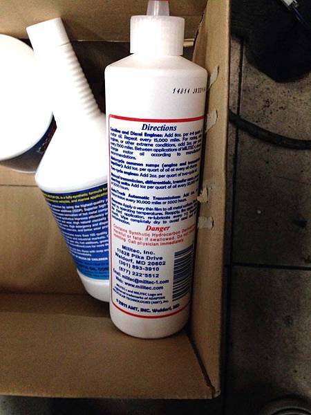 小辣密力鐵千萬不要用16oz的,我05年開始就一直使用密力鐵到現在,也一直都是使用8oz的,除了有一次貪便宜買了一次16oz的在什麼倉庫的,去煌旂保養二哥立刻發現油不是很臭,密力鐵這油打開可是有一股很臭的味道,而16oz的卻沒有,我沒有說它是假的,但我知道這東西以前有人做仿的,後來幸好那次沒事之後就不敢亂買了,想想8oz賣850元上下,16oz再怎麼賣我想也要有1500左右吧,如果賣你1200上下我是生意人我又不是頭壞掉。8oz的密力鐵外包裝有使用說明6.5公升機油的是8oz全加。