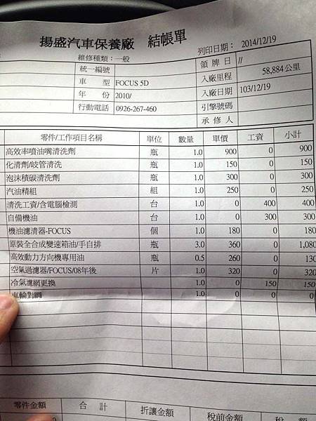 這次保養完的總工單,收費明細,真的算便宜了!!再次謝謝老王