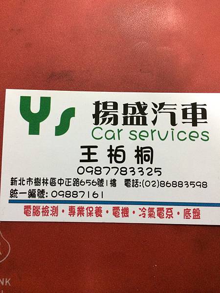 感謝樹林楊盛保養廠-王老闆的服務!!