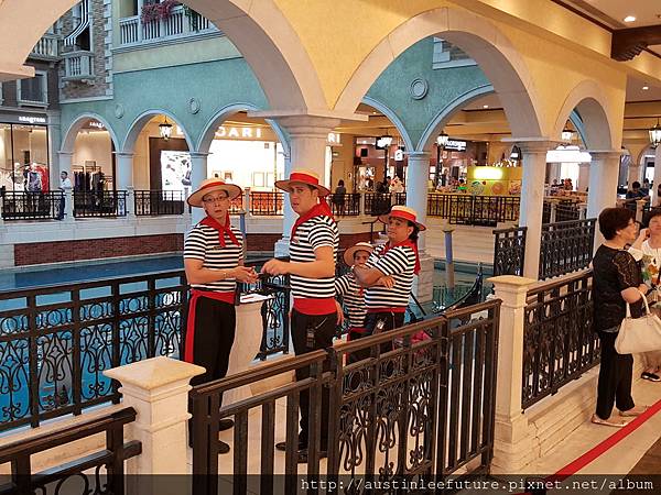 其實威尼斯人大運河購物中心裡面除現了很多威尼斯的建築外觀,但我也沒去過威尼斯,所以都是看拍拍,途中船伕會介紹這是威尼斯的什麼景什麼景,不過也沒法記得起來啦