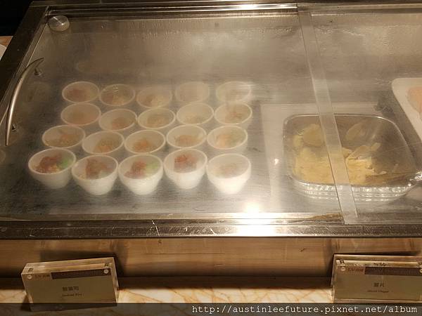 吃的種類很多,只是精緻程度沒有那麼優就是了,但有一點我是覺得該拿出來講,就是這是自助餐廳,原則上大家都付一樣的錢(有些人有優惠這就不管了),但當天在現場卻發現有幾桌卻有著跟其他人都不同的菜色,更為豐富精緻的菜色由服務人員送到他們的桌子,一直在找到底是那裡有這樣的現點現做是我沒發現的?一直找不到所以去問服務生,服務生回答:那是主廚的朋友所以有主廚特殊招待....