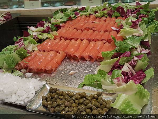 燻鮭魚還提供酸豆以及洋蔥,可惜我不吃生的