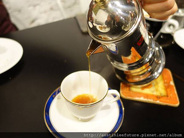 很威的單品咖啡上桌,與卡布奇諾一起照張相