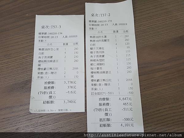其實 2月21日晚間我們一家要給家母過生日,在餐廳的選擇上我也問了家父,畢竟之前靓紅樓總監說要是再度前往他會親自全程服務,我向家父提議要不要再給靓紅樓一次機會,家父回應:『烤鴨又不是只有這一家,這樣貴服務態度又這樣,沒有必要再去』。因此 2月21日晚間我們一家是訂了宜蘭市在地的得意樓餐廳,櫻桃烤鴨二吃一套的價位是 980元,五人用餐加上點菜最後總價是兩千多元,這一篇日後也會有實際的分享文提供