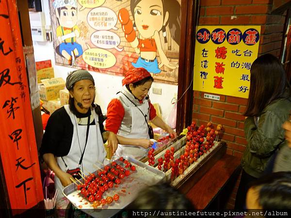 糖葫蘆這種東西雖然是中國傳來的,但在台灣的糖葫蘆跟中國北方的有滿大不同,中國北方會用棗或是李,台灣這裡則是以番茄夾蜜餞,以及近來物質提升了就出現草莓這種比較高單價的糖葫蘆