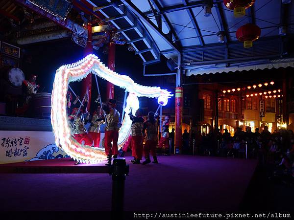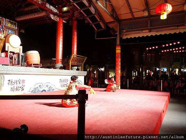 其實在晚間的傳藝,我個人認為就傍晚的夜景好看,但入夜之後人潮散的非常快,園區冷冷清清少了人擠人的樂趣,多了幾分清幽與寂靜。晚間的活動也都結束的很快,最晚的活動應該就是園區內部文昌祠前的戲台表演