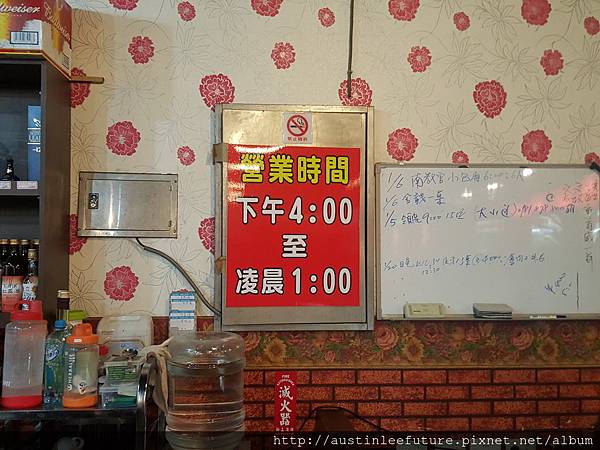 店家櫃台上的營業時間,看來主打晚餐及消夜時段,在宜蘭營業到半夜一點的店家其實都算滿晚了,很多晚間九點或十點就打烊了