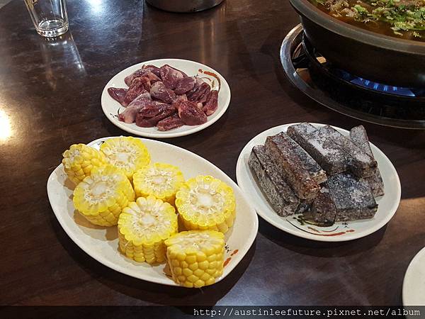 點的食材部分,鴨心及玉米50元,米血糕40元,其實在這一類鍋物店價格水平來看,這一家的家點價格並不算貴,其中那玉米真的很好吃!後來還有再加點一份玉米,以及鴨肉丸(忘了拍)