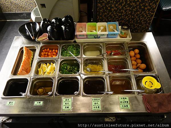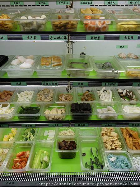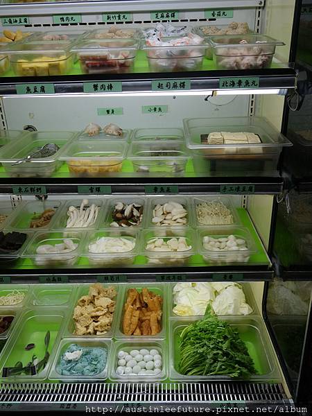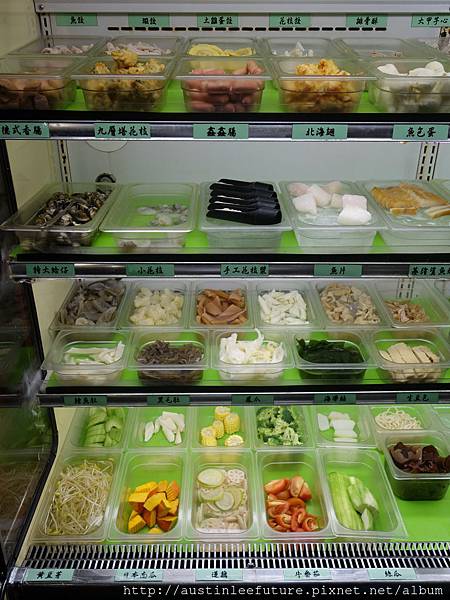 一樣是這一大個食材櫃,裡面提供的都還滿新鮮,特殊的部分有山茼蒿、德式香腸、基隆鯊魚煙