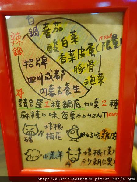桌面上的立牌有湯頭及肉品介紹