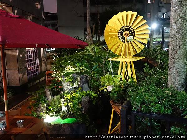 小院子還設置了風車與假山造景,天氣好時還有戶外遮陽座可以放鬆心情