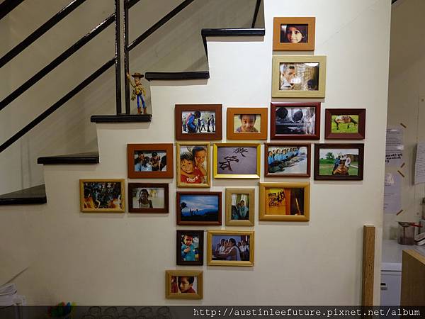 店家有二樓,因為我們坐位在一樓就沒有上樓看看了,樓梯旁放了這些海外志工活動所拍攝的孩子照片