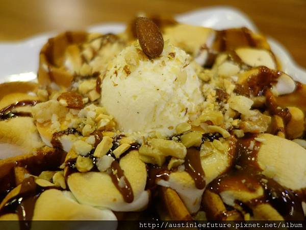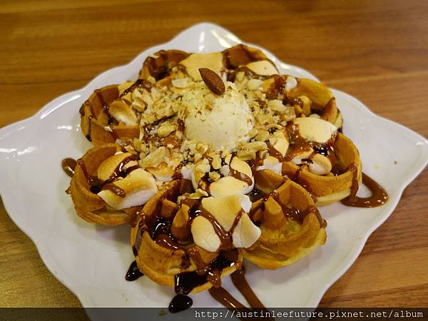我個人不會吃太甜的東西,所以棉花糖鬆餅對我來說是甜膩了一些,但這真的要看各人口味,棉花糖鬆餅上還撒了滿多的核桃與杏仁,其實店家我覺得很用心也很實在,那些核桃與杏仁並不是裝飾用,而是紮紮實實可以吃到的