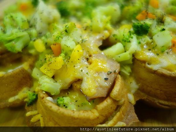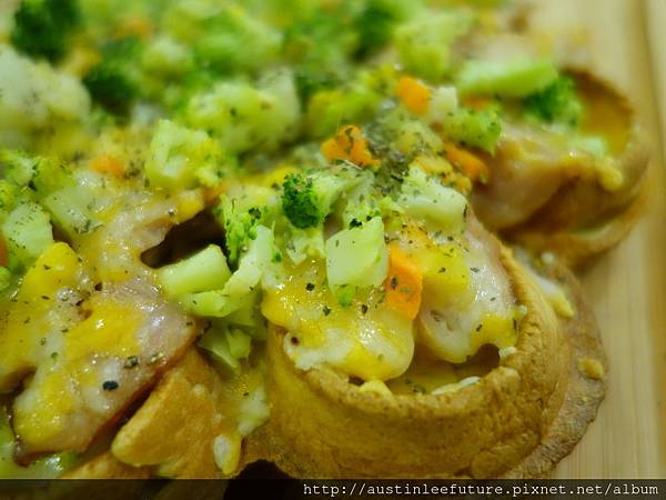 燻雞蔬菜安娜塔就是鹹鬆餅,上頭是焗烤起司加上燻雞及蔬菜
