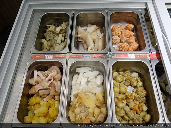 特別的是有些冷凍海鮮類,不帶殼的帆立貝、雪螺、鯊魚腹肉、曼波魚肉魚皮這些