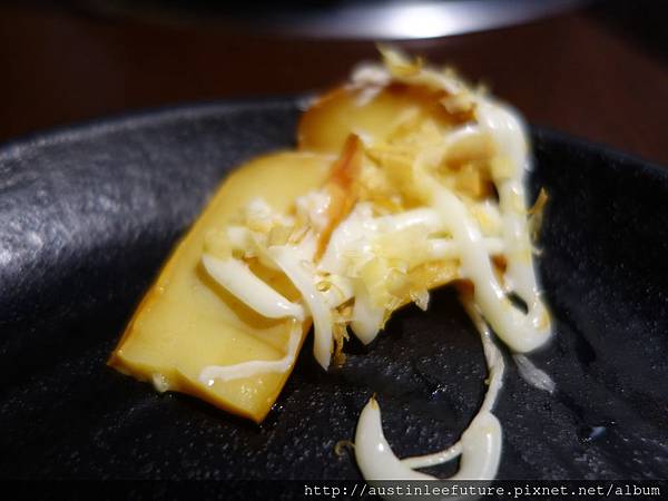 煙燻飛捲,加上美乃滋,其實吃起來有點像燻過的貴妃鮑,我猜想應該都是大王魷魚製品之類的,不難吃就是了