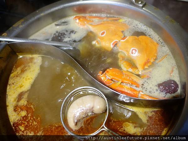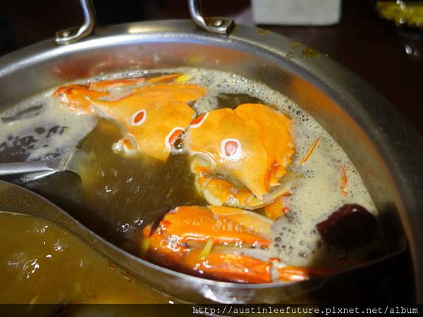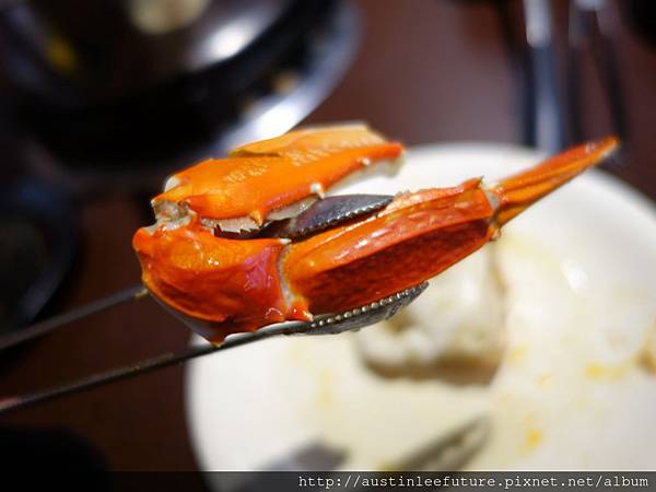 這三點蟹著實不小,一般鍋物吃到飽店的蟹個頭都給的不太大,我頂多來煮湯不太會去吃肉,但這隻三點看來是有肉的