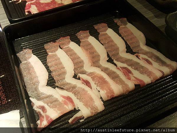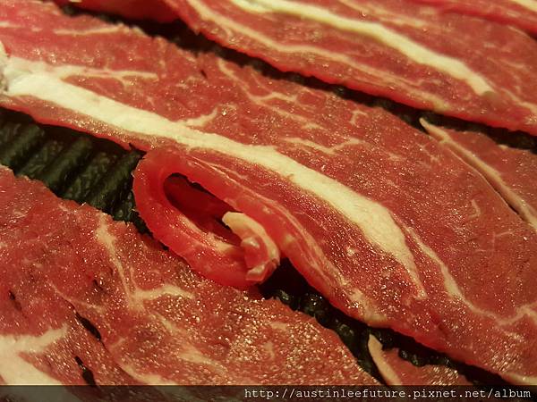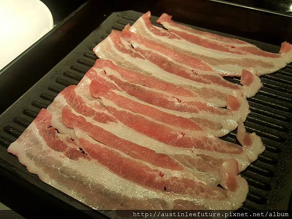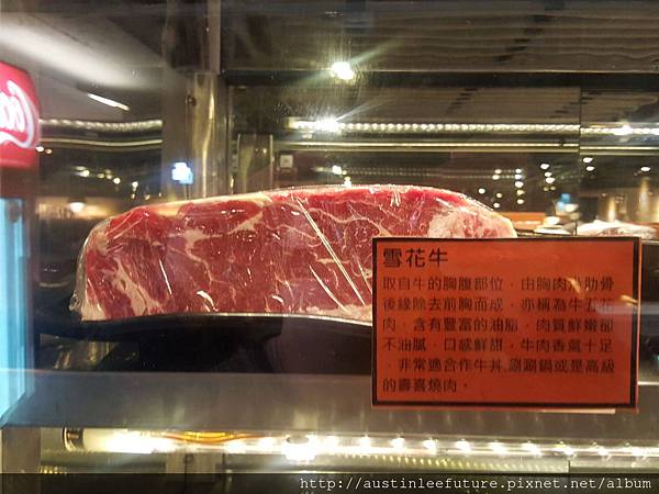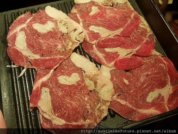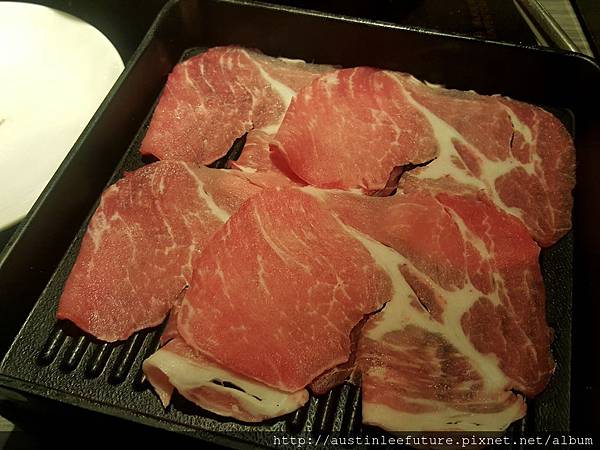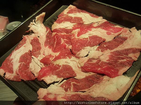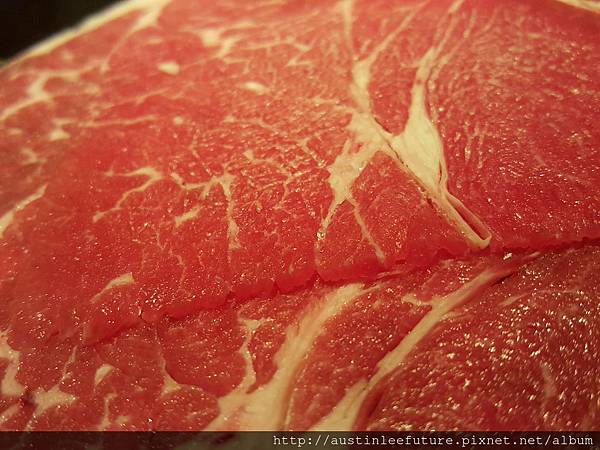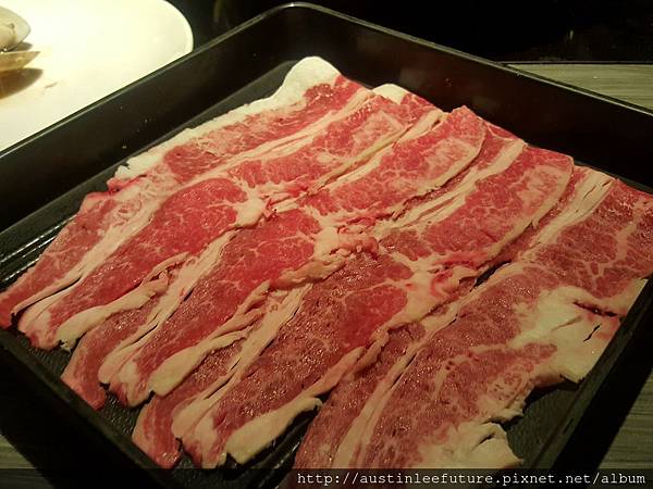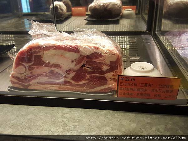 這一家店的取名方式也滿有趣,它的肉品櫃上說明也稱為牛五花,但這若是牛五花也算瘦了,這肉是還不錯比較沒那麼肥,但是稍薄一點,涮一下就入口因為肥瘦比剛好,所以不會像牛小排比較乾澀一些
