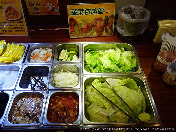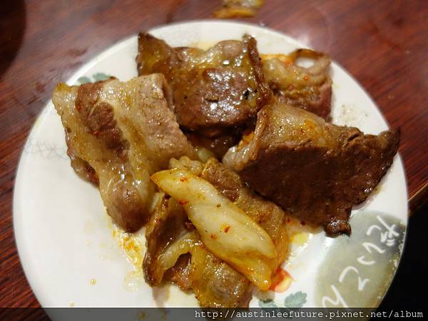 牛五花比較油,捲韓國泡菜吃正對味,這裡的酌料台就有韓國泡菜,不錯吃