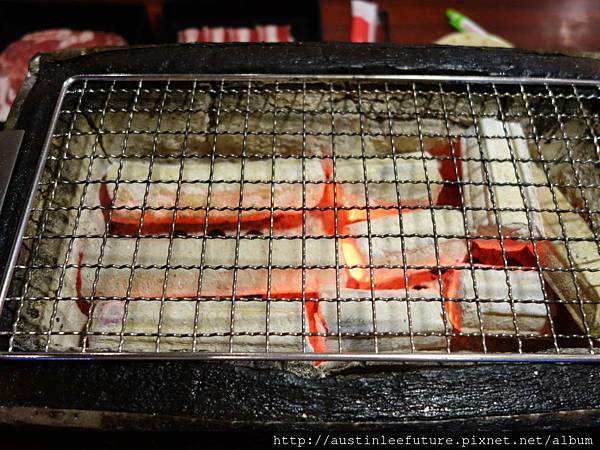 炭是用這種,火力強時間也持久,爐子的大小可以接受,隔熱跟排煙也做得不錯,手不要直接放到爐上方的話是不容易被熱到,不像一些店家根本是烤臉烤手.....這家吃完也沒有滿身烤肉味,滿不錯