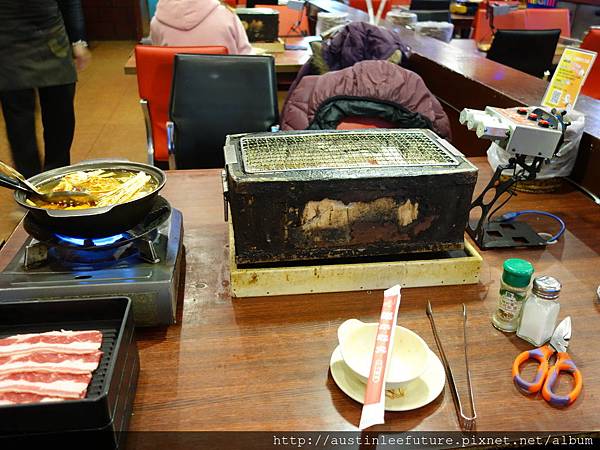 每桌還附鹽、黑胡椒粉、食物剪刀以及照片右端鏡頭外有個小鍋蓋,店家真的都還滿貼心的,每桌準備好,不像 田X發X 就那兩三支剪刀整間店輪著用