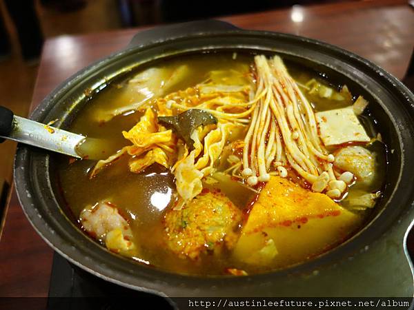 鍋選了麻辣湯頭,一般在燒肉時附的火鍋都被我拿來當吃菜顧健康的,這次也差不多