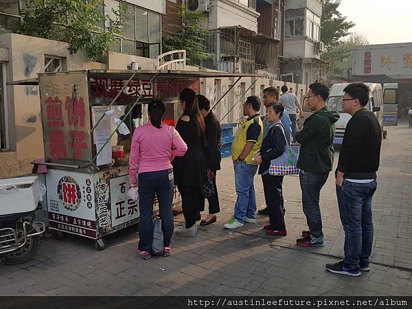 我個人第一次是吃煎餅果子,其實大陸的油條跟台灣不太一樣,