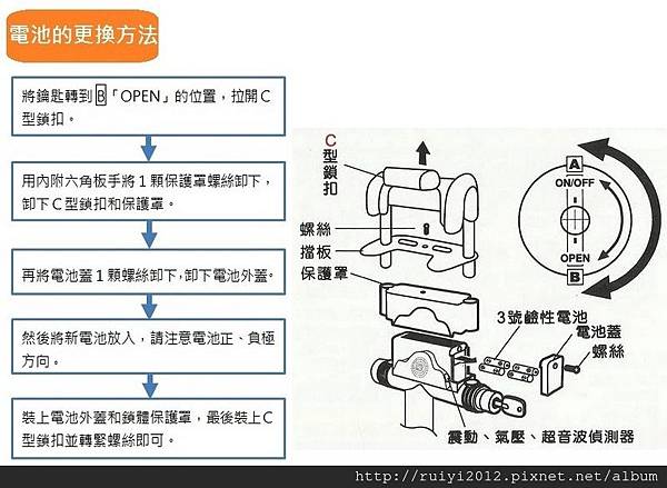 4.鎖體與遙控器同步開關機:遙控器會隨鎖體開機、關機,不會因為忘記開電源錯失防盜功能。